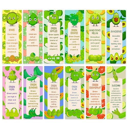 Only Zest Bookmarks for Kids Bulk - 48 Pack Fruit Bookmarks for Kids, Bulk Bookmarks, Cute Bookmarks, Book Marks for Kids, Paper Bookmarks Classroom Gifts (Green)