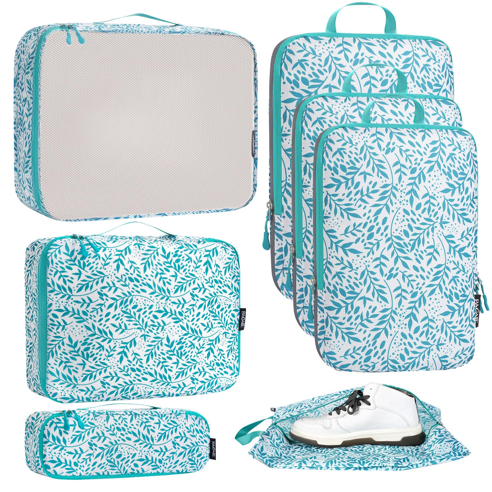 Bagail Ultralight Packing Cubes 7 Set, 3 Compression Packing Cubes 3 Packing Organizers With 1 Shoe Bag-Beige