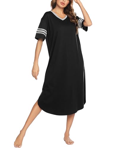Ekouaer 3 Pack Womens Loose Comfy Nightshirt Sleepwear Short Sleeve Nightgowns Casual Sleepshirt Loungewear Set 4 S