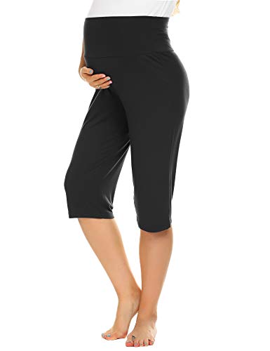 Ekouaer Maternity Shorts for Women Maternity Capris Yoga Pregnancy Short Pants Soft Joggers Lounge Bottoms Black Small
