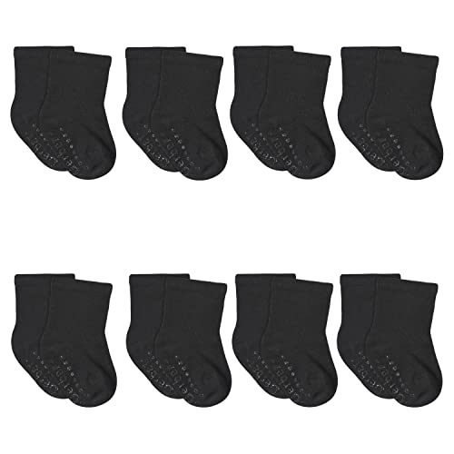 Gerber Baby Girls 8-pack Wiggle-proof Jersey Crew Socks, Black, 0-6 Months US