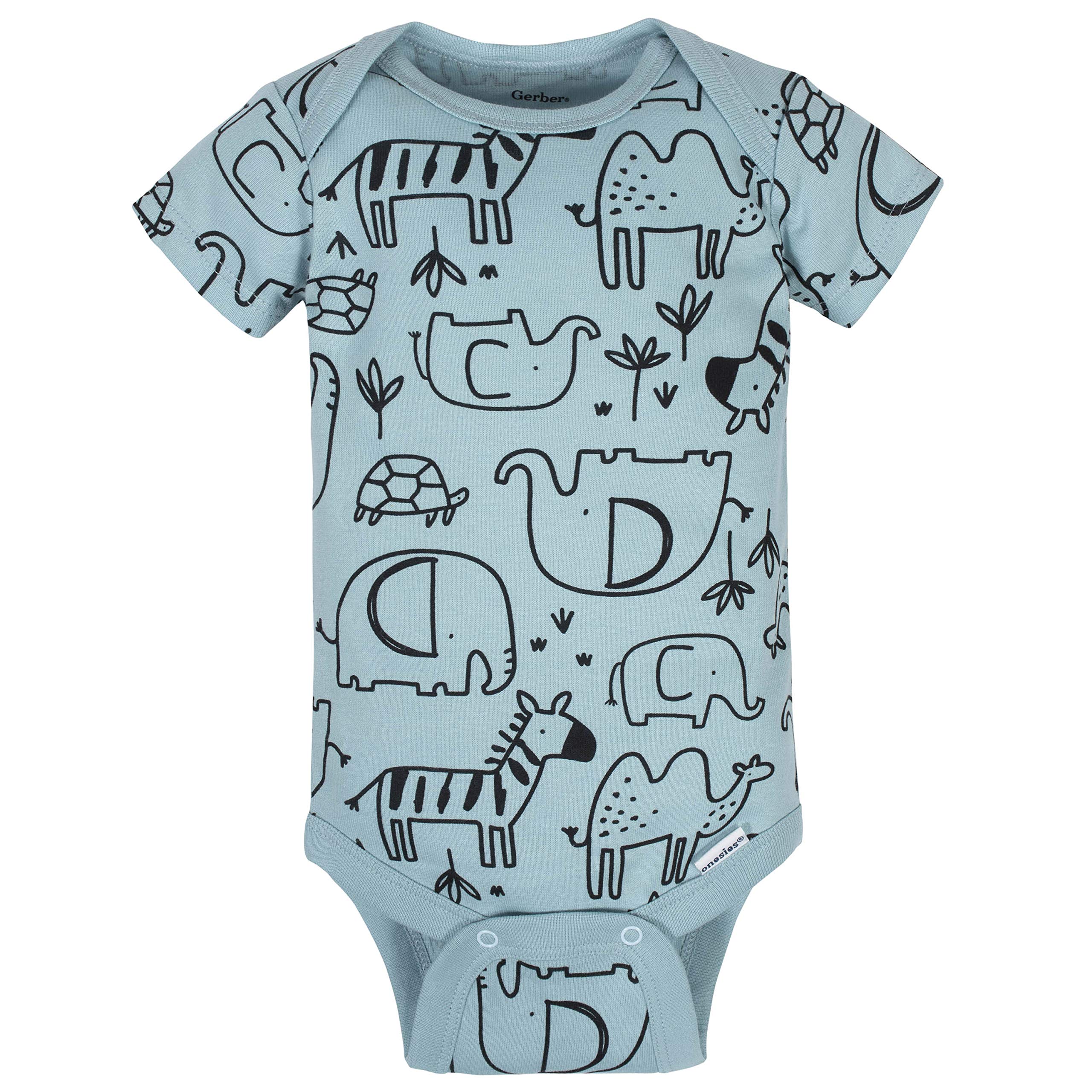 Gerber Baby Boy's 8-Pack Short Sleeve Onesies Bodysuits, Jungle Blue, Newborn