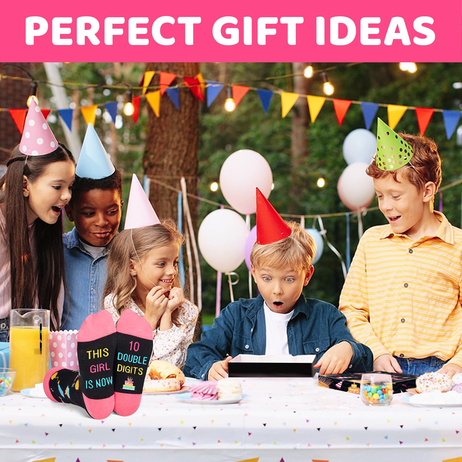 HAPPYPOP 10 Year Old Birthday Gifts Ideas for Girls - Socks for Tween Girls Age 10, Presents for 10 Year Old Kids, Gifts for Ten Year Old Girls, Black