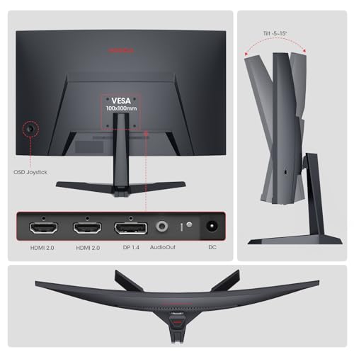 KOORUI 24 inch Curved Monitor, Full HD 1080P Curved Computer Monitor, 1500R, 75Hz Monitor, HDMI VGA, Tilt Adjustment, LCD Monitor, Eye Care, Black 24N5CA