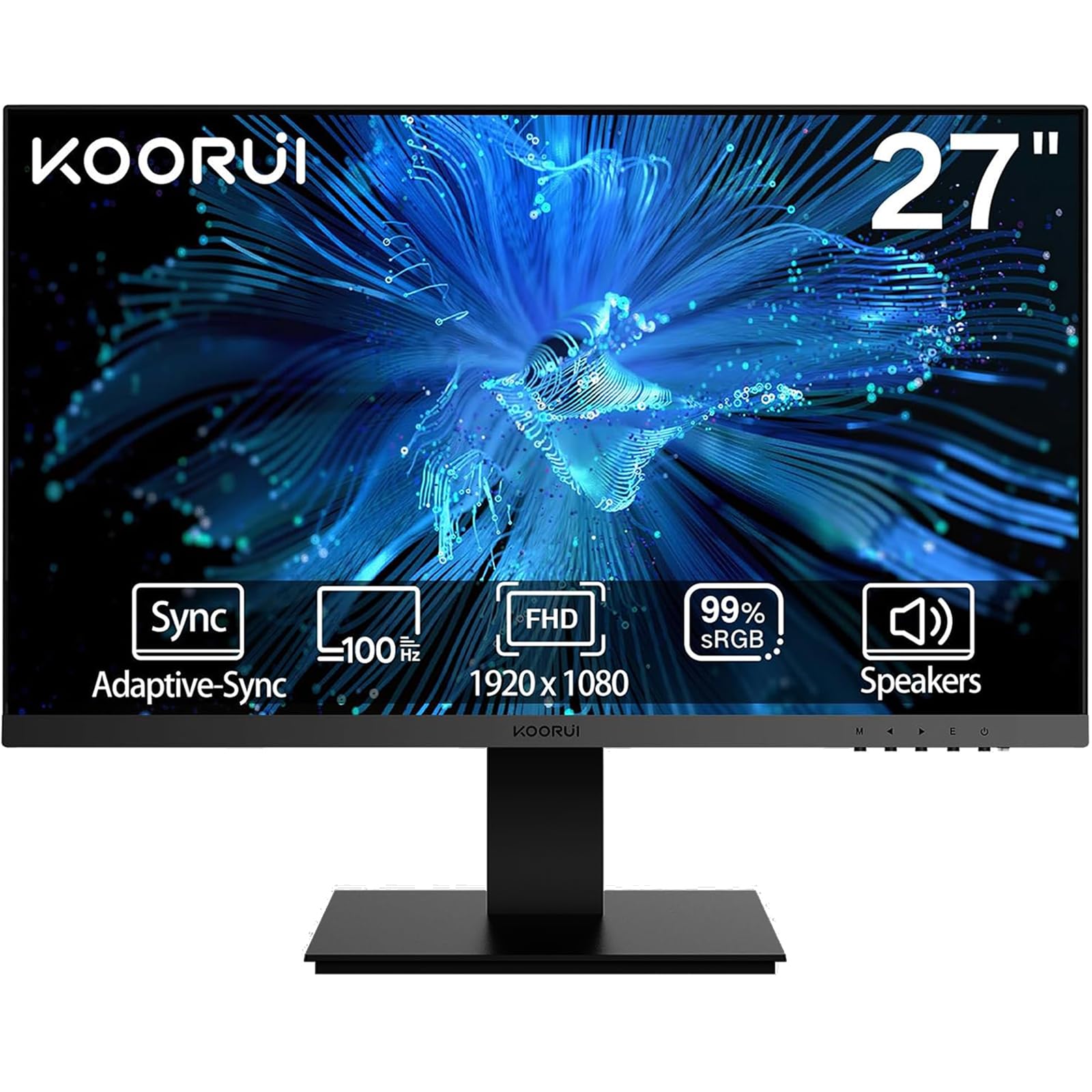 KOORUI 27-inch FHD Computer Monitor, 100Hz Full HD(1920 x 1080) Gaming Monitor with Speakers, HDMI,VGA & Audio Port, FreeSync, Tilt Adjustable, VESA Mountable, Zero-Frame, Black