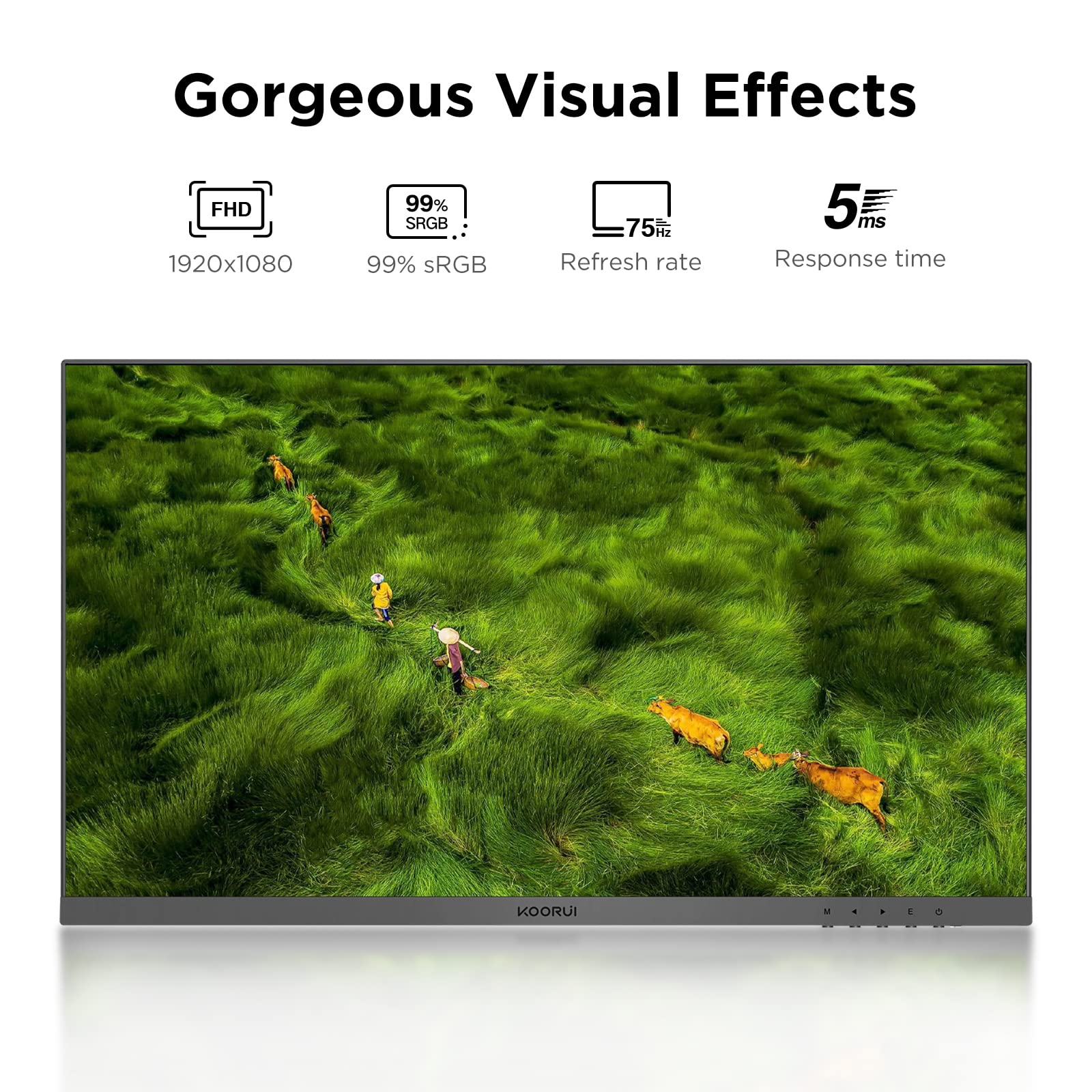 KOORUI 24 Inch Computer Monitor, FHD 1920 x 1080p Office PC Monitor IPS Display 75Hz, HDMI, VGA, 75 x 75 mm VESA Mountable, Frameless, Eye Protection and Ergonomic Tilt Adjustment