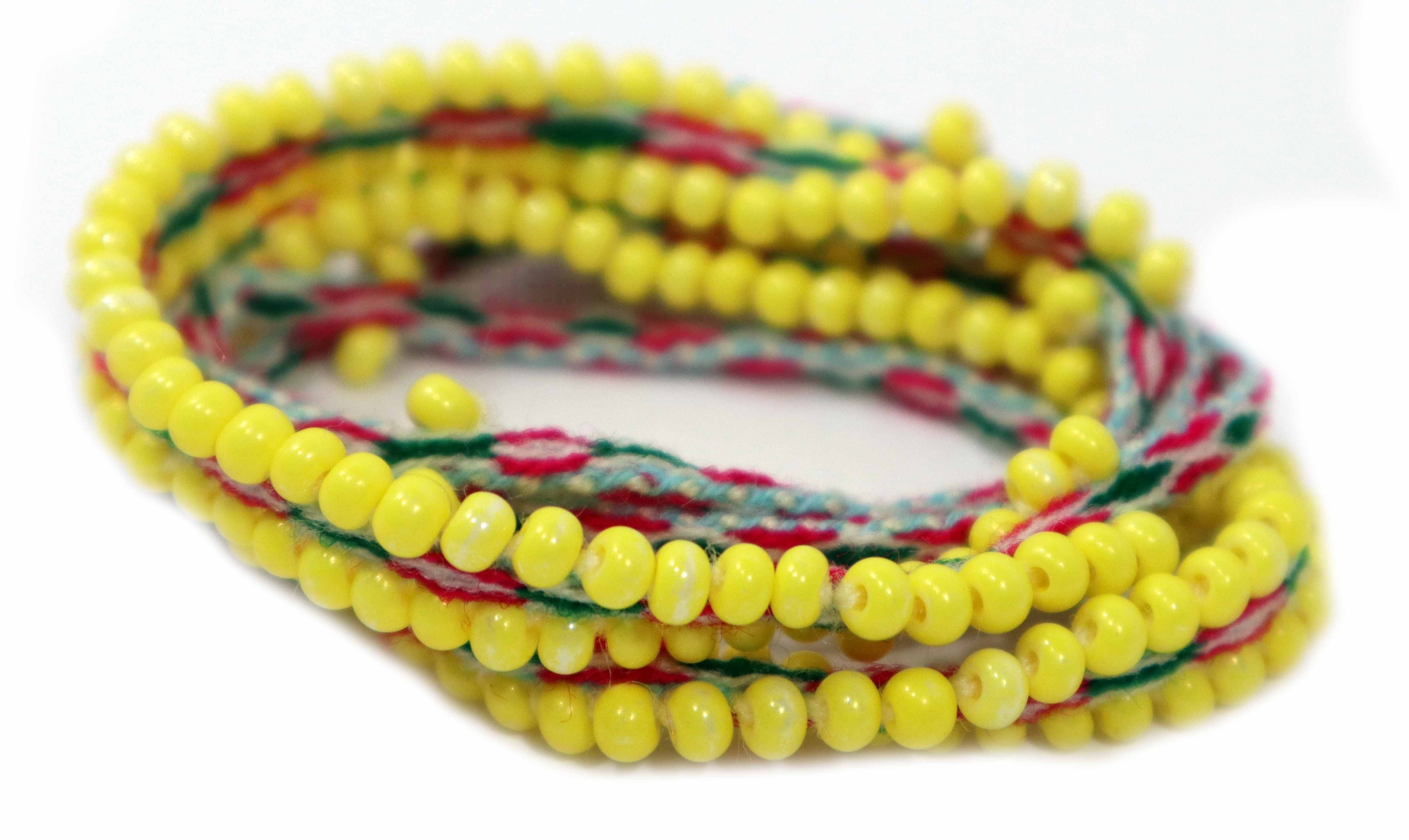 Washed Out, Yellow Beaded, Fuchsia with Green, Tie Wraps