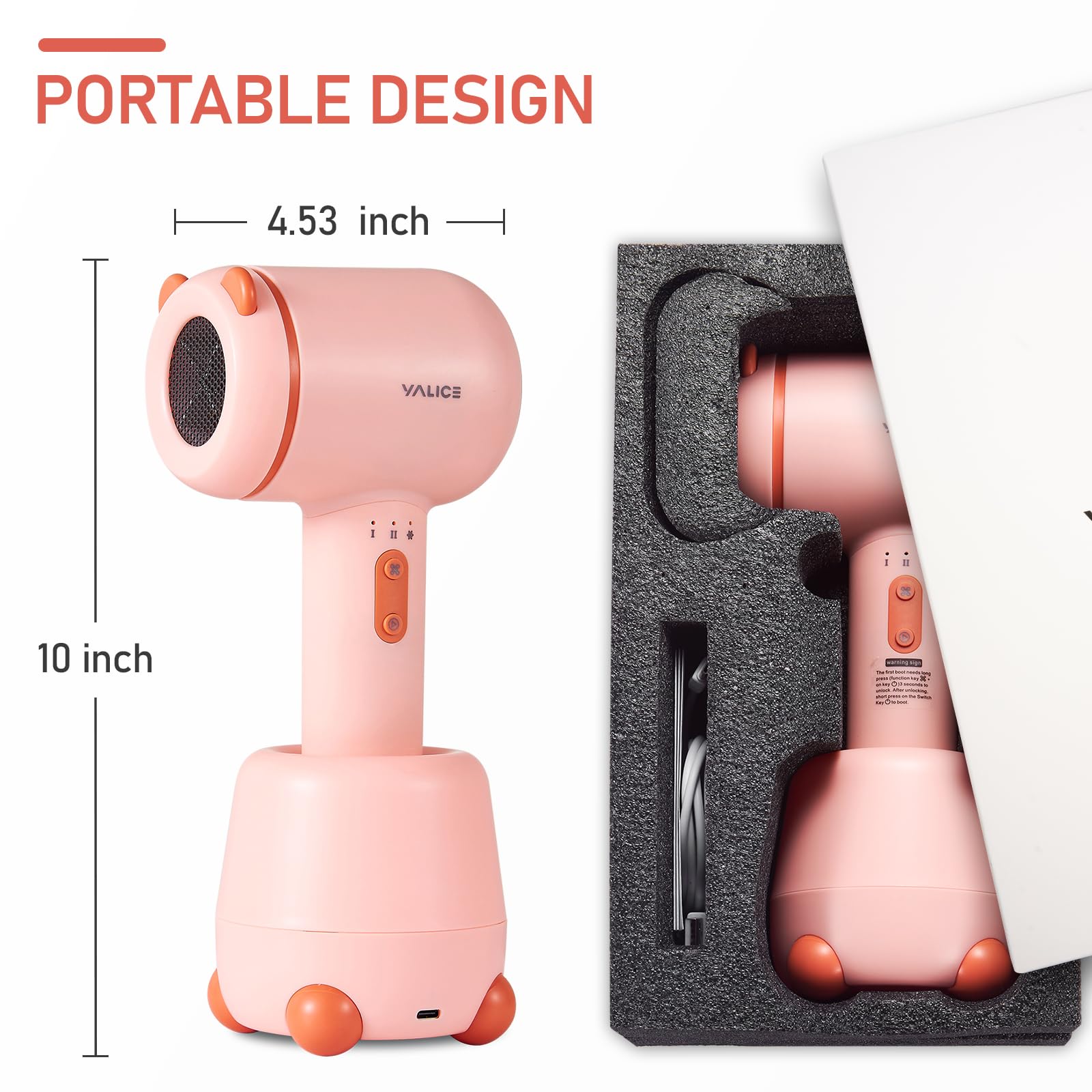 Cordless Kids Hair Dryer for Infant, Low Heat Gentle Air Small Rechargeable Hair Blow Dryer for Baby Butt Skin with 3 Speed Settings, 0-3 Years Using (Orange)