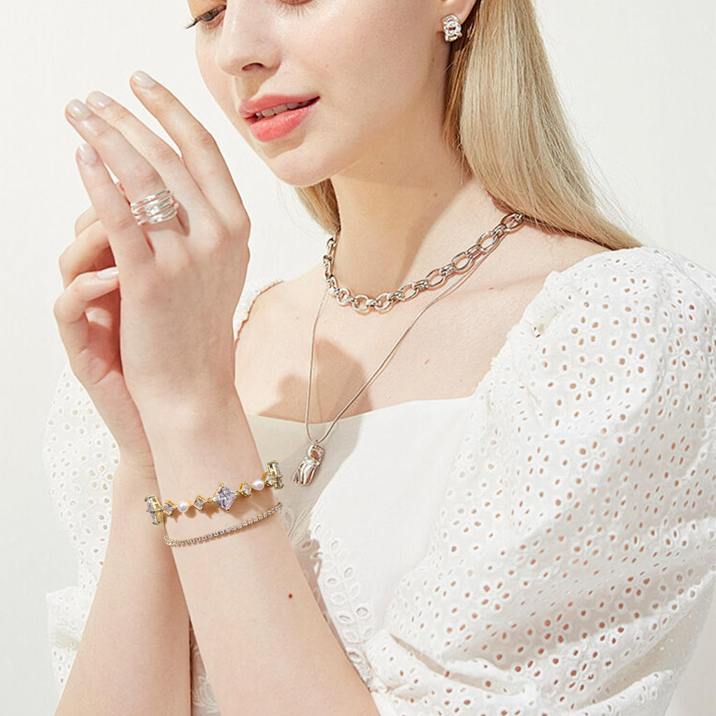 - About style---You will receive 3 different white gold bracelets. You can choose to wear one or a combination.The shape of each bracelet's zircon is different. You can enjoy the unique charm brought by different bracelets.