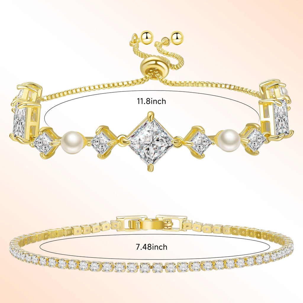 - About quality---14K gold plating on the surface with 925 sterling gold pillars, lead-free and nickel-free, hypoallergenic, ensuring a durable wearing experience. And the Tennis bracelets applied color retention technology.Will not fade easily.