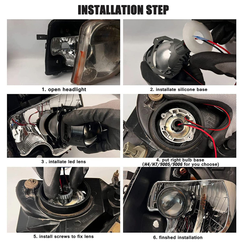 - Non-destructive Installation: Bi-led projector lens features a threaded-shaft style mount on the back that allows the projectors to be locked on their car headlight hardware, it can be mounted in H4/H7/9005/9006 headlights.Mini 2.5 inch light body applys to 95% cars