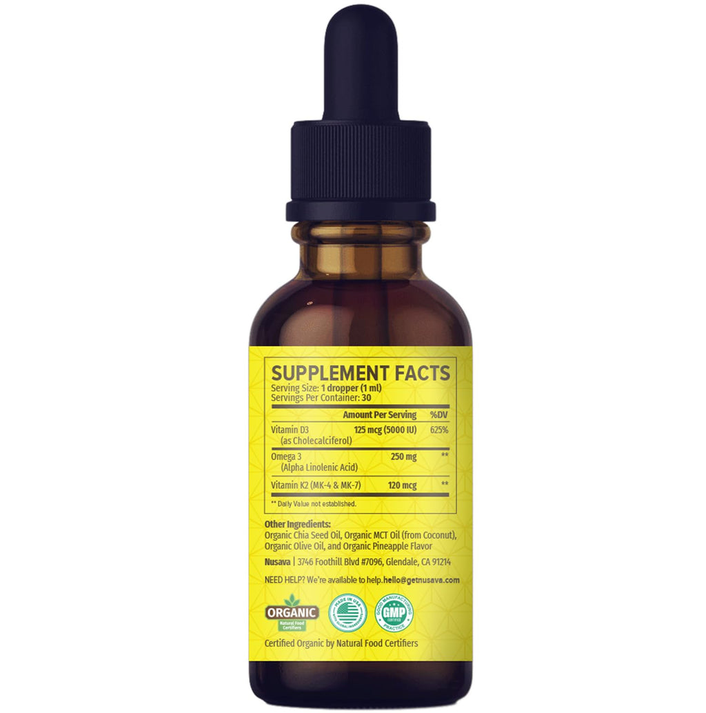 - Carefully Curated Organic Vitamin D Liquid - Our Vitamin D3 K2 liquid drops contain no fillers, are non-GMO, and are proudly USA-made with global ingredients.