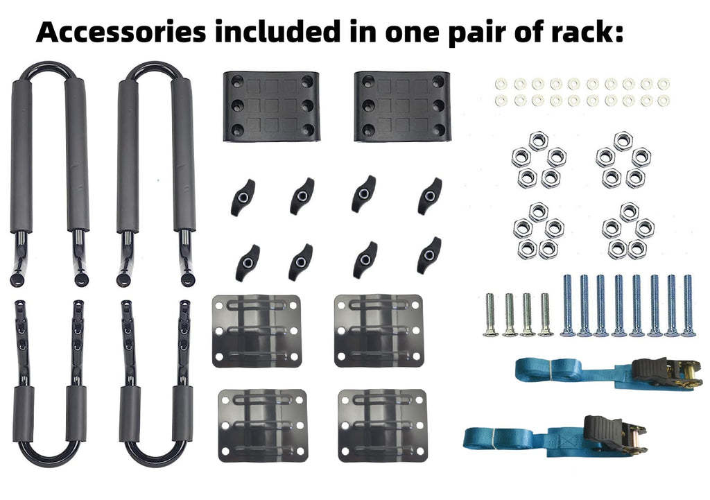 - 【FEATURES】 Steel design with adjustable padding for carrying strength and kayak protection Wide mouth J bar offers easier loading and unloading Quick on/off hardware ensures fast installation and removal Optimally sized J style carrier leaves roof space All surface rust-resistant coating and hardware for longer product life Includes all mounting hardware and 2 straps Accommodates kayaks up to 36" wide and 75lbs Will fit most factory or aftermarket square,oval and flat crossbars.except round bar.