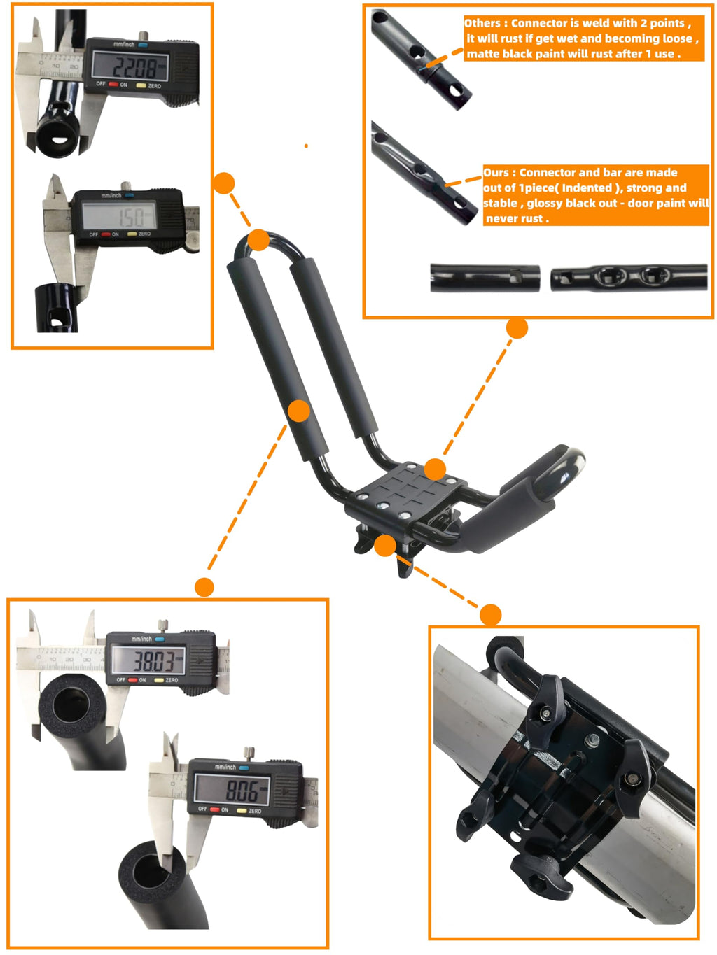 - 【Please note】 This product is not suitable for installation on circular cross bar with diameter less than 1.2 inches.If any parts are missing from the package, please contact the seller's customer service immediately.