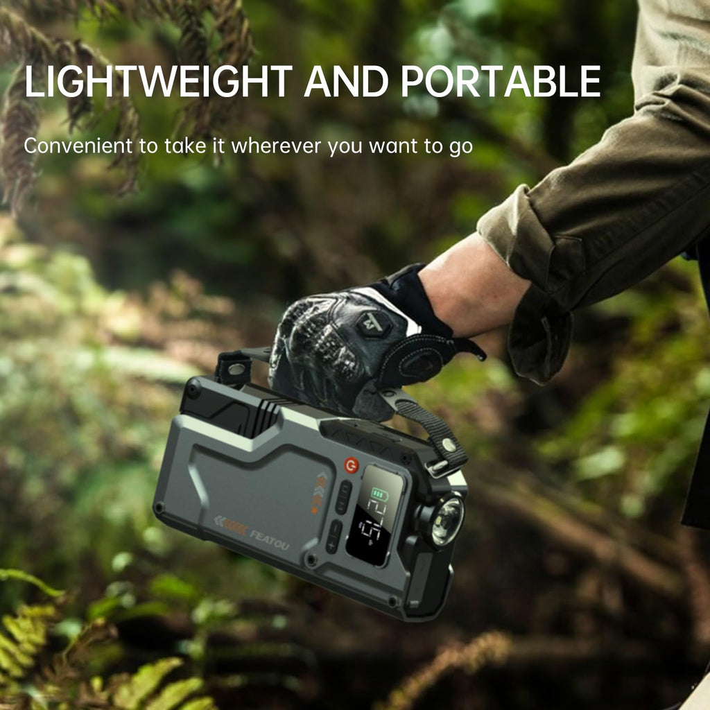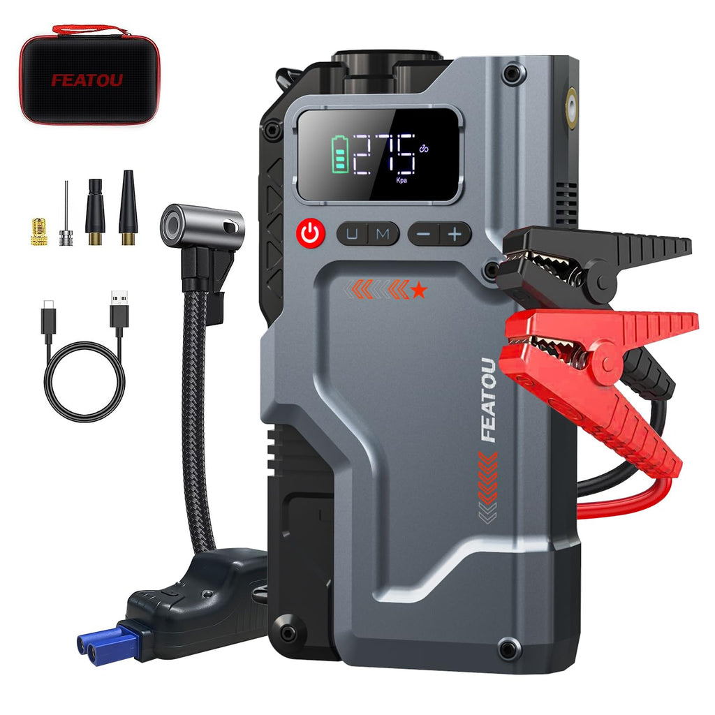 - 【5 in 1 Feature】 Multifunctional car battery jump starter.Jump starter、Power bank 、Inflation pump、LED lighting、Tire pressure monitoring.Comprehensive car service provided for you.
