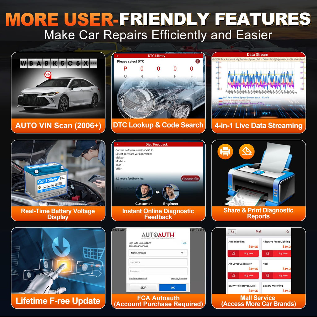 - All-In-One Functions Meet Your Re-pair Need- Evolved from LAUNCH X431 Creader Elite, 2025 LAUNCH Creader Elite V2.0 fit for Toyota Lexus OBD2 Scanner is more advanced in hardwares and software. Dismountable USB Cable, Android 8.1 OS, 4'' Touchscreen, Larger 2G+16GB Extended Memory, 3000mAh Battery ,In-depth Full System Diagnosis, Full Bi-directional Control, ECU Coding, All Fre-e Services Function, 10 Full OBD2 Functions, Autoauth for FCA SGW, Auto VIN, Lifetime F-ree Update.