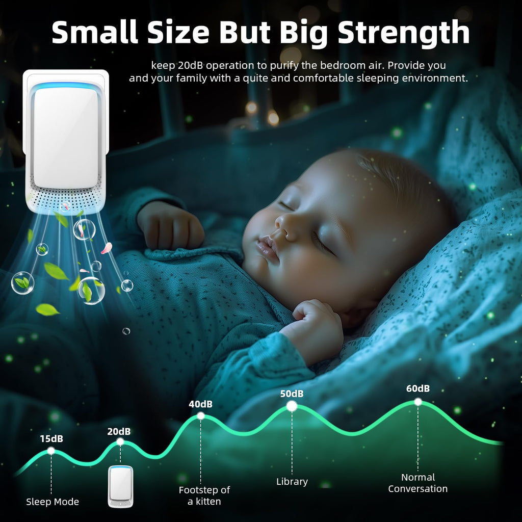 - đłPORTABLE AND CONVENIENT :The air purifier plug has a simple and stylish design, making it a discreet yet effective wall air purifier plug. It is small, lightweight, and compact. Take it with you on the go, plug and play, save space and replace bulky, expensive air purifiers. It plugs into any standard outlet, making it ideal for use in offices, gyms, hotels, libraries, cafes, and more, ensuring fresh air is always within reach.