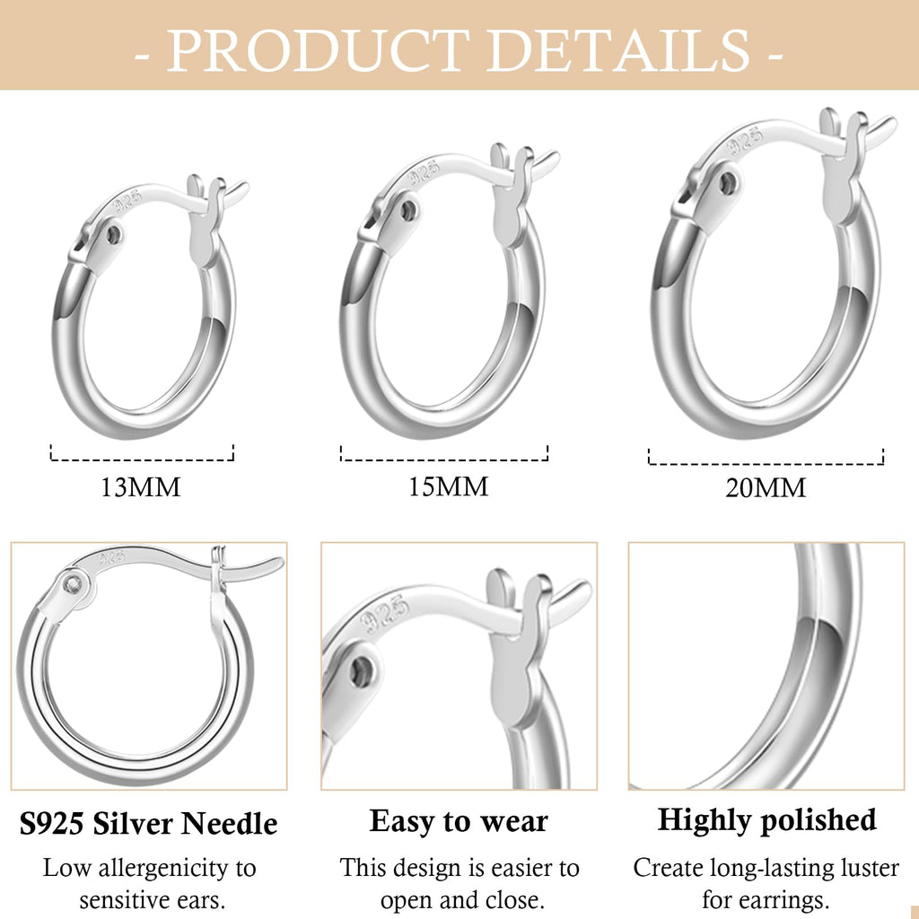 - Advantage:These small hoop earrings are lightweight and easy to wear and take off. Giving you comfortable wearing experience. Three different sizes for your daily needs.