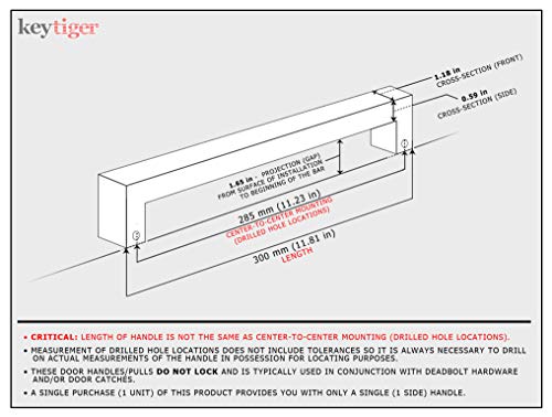 - PRODUCT DETAILS: Part Number: KT3014-800-01|2-SIDED HANDLES| Exact LENGTH of the Handle: 31.5 inches| HOLE DISTANCE (distance between the drilled holes or "Center-to-Center Mounting" in dimensional image below): 30.5 inches| Cross Section/FRONT*SIDE ("F*S" in variation options): 1.5*1.0 inches|FINISH of THIS SELECTED product: Full Brushed, Satin-Finish---OTHER existing finishes of KeyTiger handles: Chrome Mirror-Polish|Antique Bronze|Copper|Matte Black-Painted|Satin-Nickel|Gold-Plated