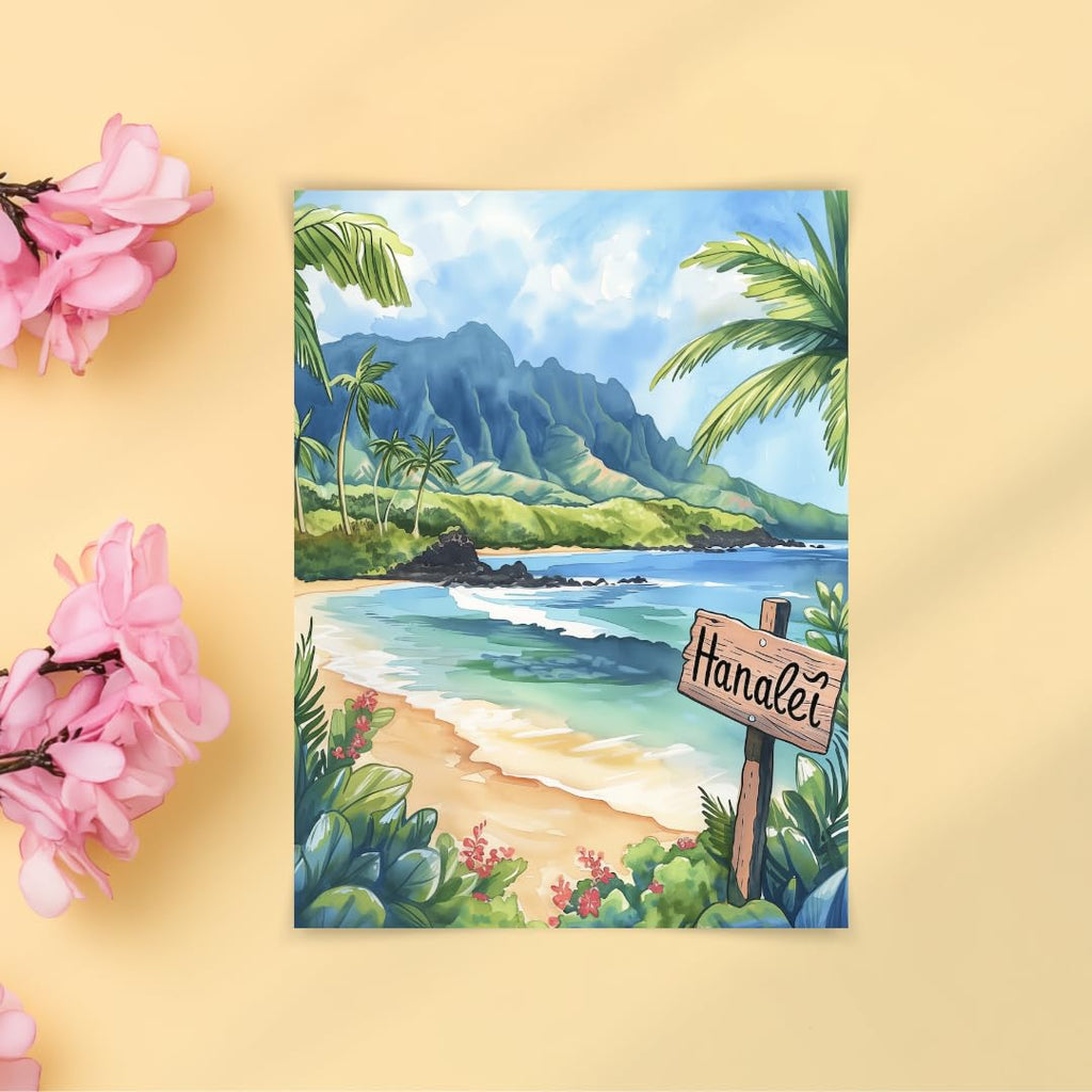 - Hanalei Bay Watercolor style Print