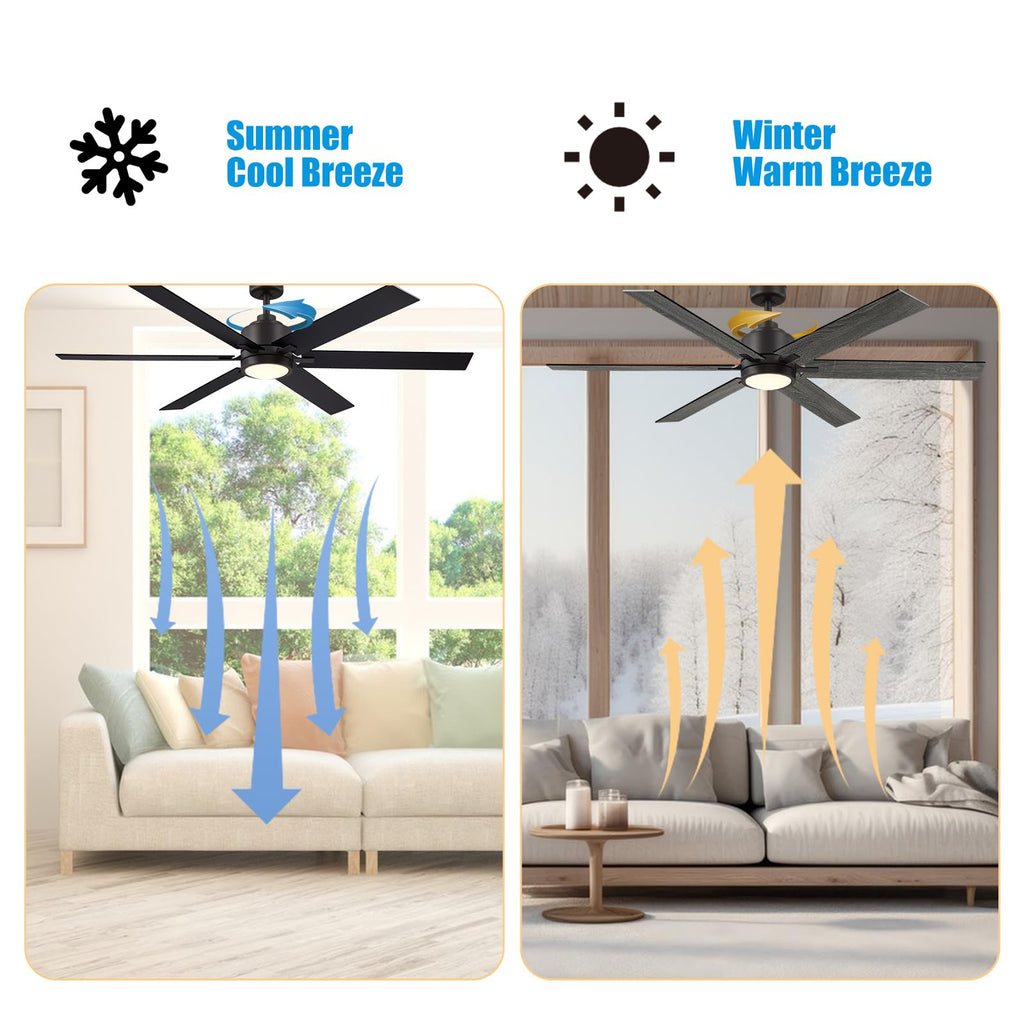 - ⭐️Ceiling Fan with Light Enhanced by 6 Blades: Adapt to any season effortlessly! Our Ceiling Fan comes with a reversible feature, allowing you to switch between a cooling breeze during summer and a gentle circulation during the colder months.