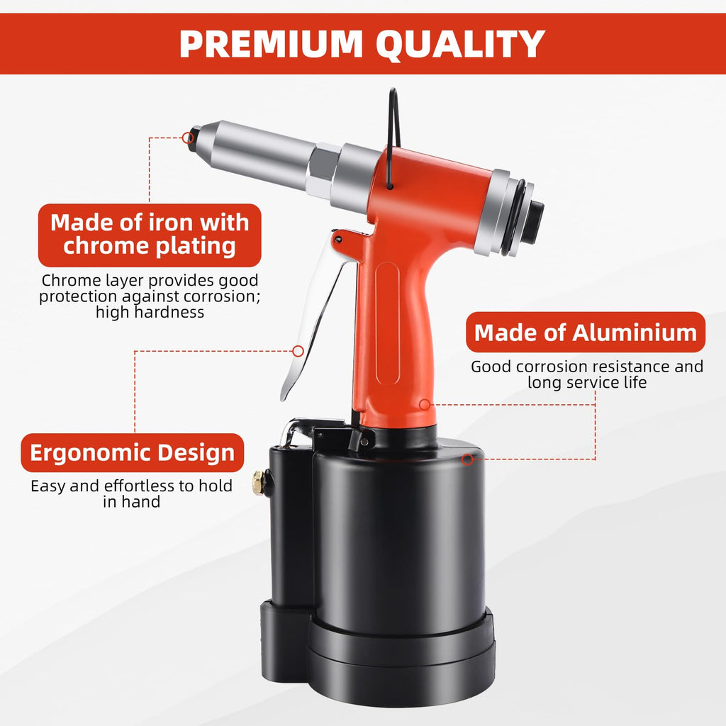 - PRODUCT FUNCTION:Pneumatic rivet gun can install rivets quickly and efficiently, saving you time and increasing your work efficiency