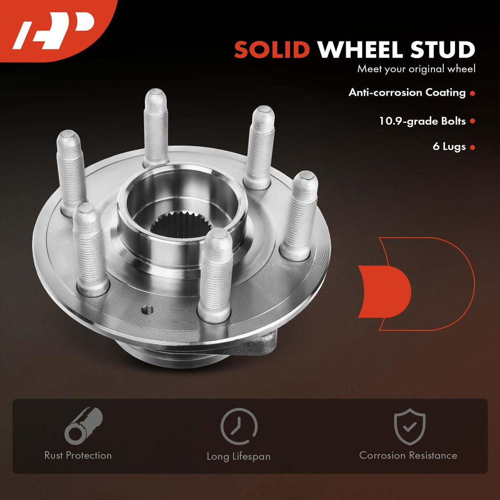 - [High Load Capacity]: A-Premium wheel bearings and hub assembly comes with ball bearing, which can provide perfect axial and radial loads capacity, and meet the daily driving condition. Additionally, the wheel studs are made of sturdy steel, and the specification is same as original, which fits the current disc rotor, wheel and nuts, making the old rusted wheel bearings hub assembly look like new.
