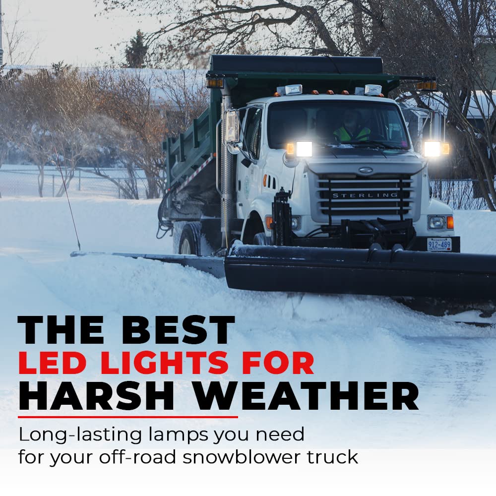 - ❄️ THE BEST LED LIGHTS FOR HARSH WEATHER: We make our LED lights of Aviation aluminum 6063, to offer you the IP68 waterproof, anti-freeze, anti-ice, long-lasting lamps you need for your off-road snowblower truck.