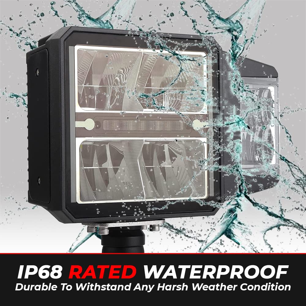 - ❄️ ULTRA-EFFICIENT & RELIABLE LED LIGHTS: Unlike traditional Halogen lights, our waterproof LED lights provide you with a luminous flux of 4000lm and White 6000K color temperature, for reliable performance of up to 50,000 hours.