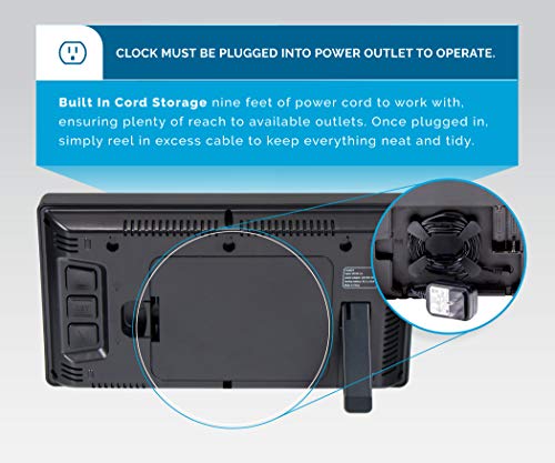 Details: The AcuRite 10-inch LED digital clock is the perfect addition to any home, office or classroom. Its large numbers make viewing from across the room simple so that you always know the time. The clock also features 6 different lighting options including an Auto-dim mode so that the Clocks bright lights don't keep you up at night. It is powered by a 9-foot power adapter and features cord storage to secure excess cord. Integrated keyholes for easy wall-mounting and sits upright for tabletop use with its fold-out stand.