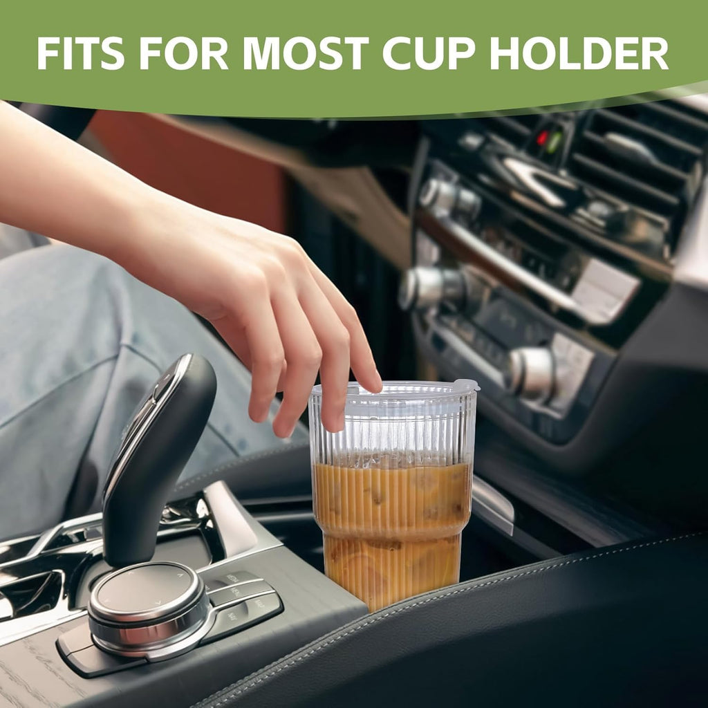 - 20OZ Glass Cups with Lid and Straw:The glass set includes: 2PCS Ribbed Glass Cups,2PCS Lids,2PCS reusable glass straws, 1PCS cleaning brush.