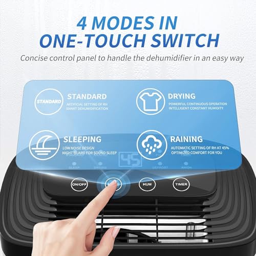 - Easy Operation & Multipurpose Modes: The portable dehumidifier is easy to use. DRYING mode with automatic CO status, RAINING and SLEEP mode respectively with default target humidity of RH45% and RH50%. Switch among modes to achieve the desired dehumidification effect. Moreover, you can preset the timing for auto-start or auto-stop from 1 to 24 hours according to your actual needs.