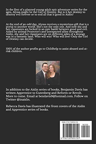 Details: Alyssa might be the Girl of Destiny. But is it her destiny to destroy evil forever or to end all that is good in Aislin? This book introduces readers to the wondrous world of Aislin where Alyssa and her classmates are on different sides of a strange war in a fantastic land. Aislin: Girl of Destiny is the first in a young adult epic adventure trilogy.