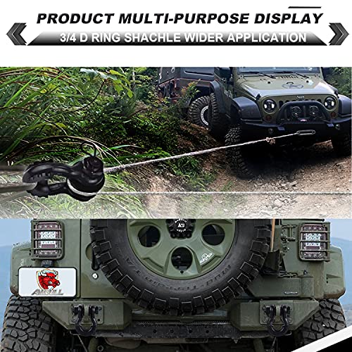 - UNIQUE DESIGN & IMPROVEMENT -- The modified 3/4" D ring shackle is specially designed for off-road recovery situations, it comes with a towing pulley, a 7/8" diameter pin, and an outer nut that avoids fall. The insurance pin provides additional protection.