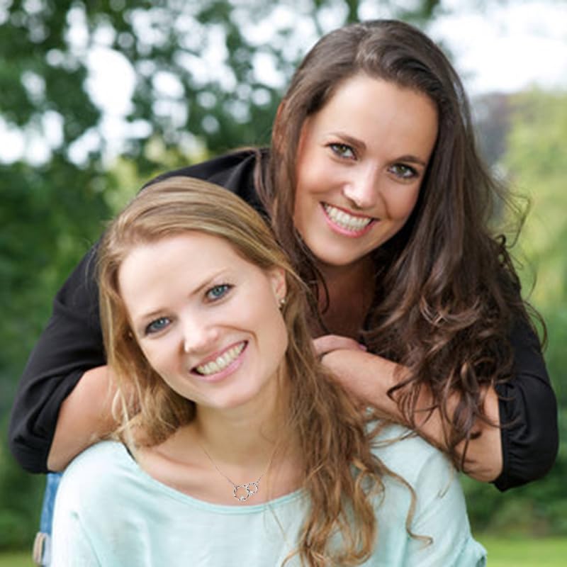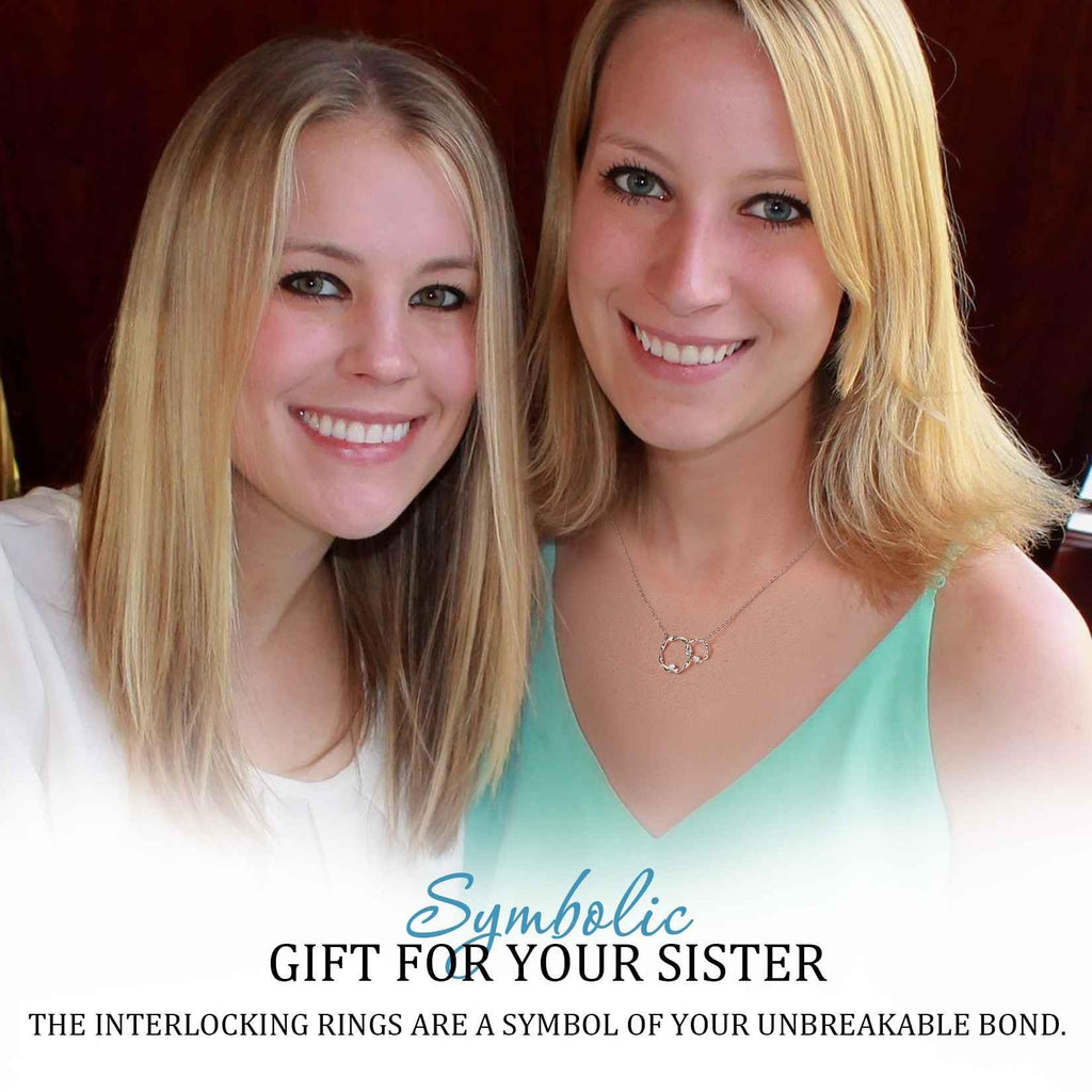 - Big Sister Little Sister Gifts: Celebrate the beautiful bond of sisterhood with this simple and elegant necklace. Let her know that your hearts are intertwined for eternity, just like these infinity two interlocking circles. Perfect gift your sisters, gift from bride to bridesmaid or going away present.
