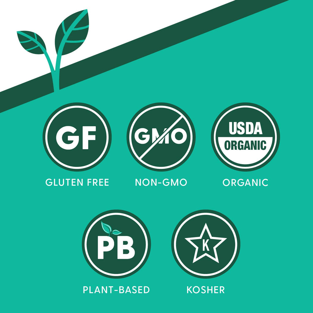 - Organic, Non-GMO, kosher, wheat free, gluten free