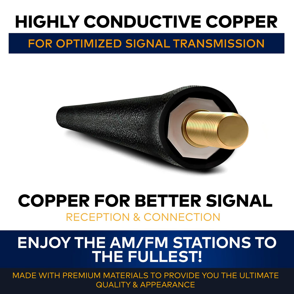 - HIGH QUALITY & DURABLE - The antenna is durable, can resist bad weather conditions & is carwash-resistant. Antenna is made of rust-free aluminum; thread is made of highly conductive copper for optimized signal transmission between the antenna and car