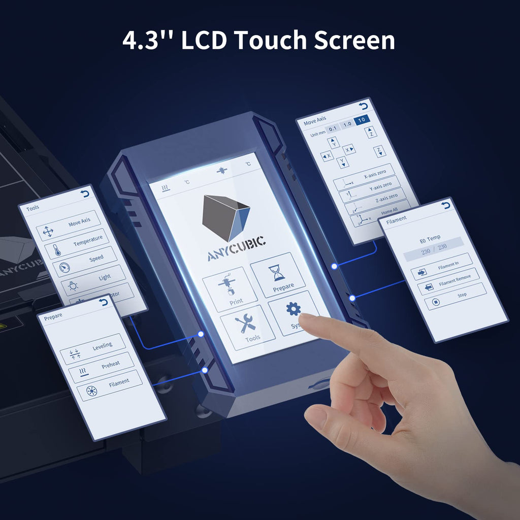 - 【Make It Smart】 ①25-Point Auto Leveling: Simple operation brings precise detection and fast leveling, helps you from the tedious manual leveling greatly. ②Power off Resume: Equipped with power detection sensor, Anycubic Kobra Plus can pause the printing process intelligently if you encounter the situation of unexpected power failure. ③Equipped with 4.3-inch LCD touch screen, which brings sensitive response and brighter display, offering better using experience;