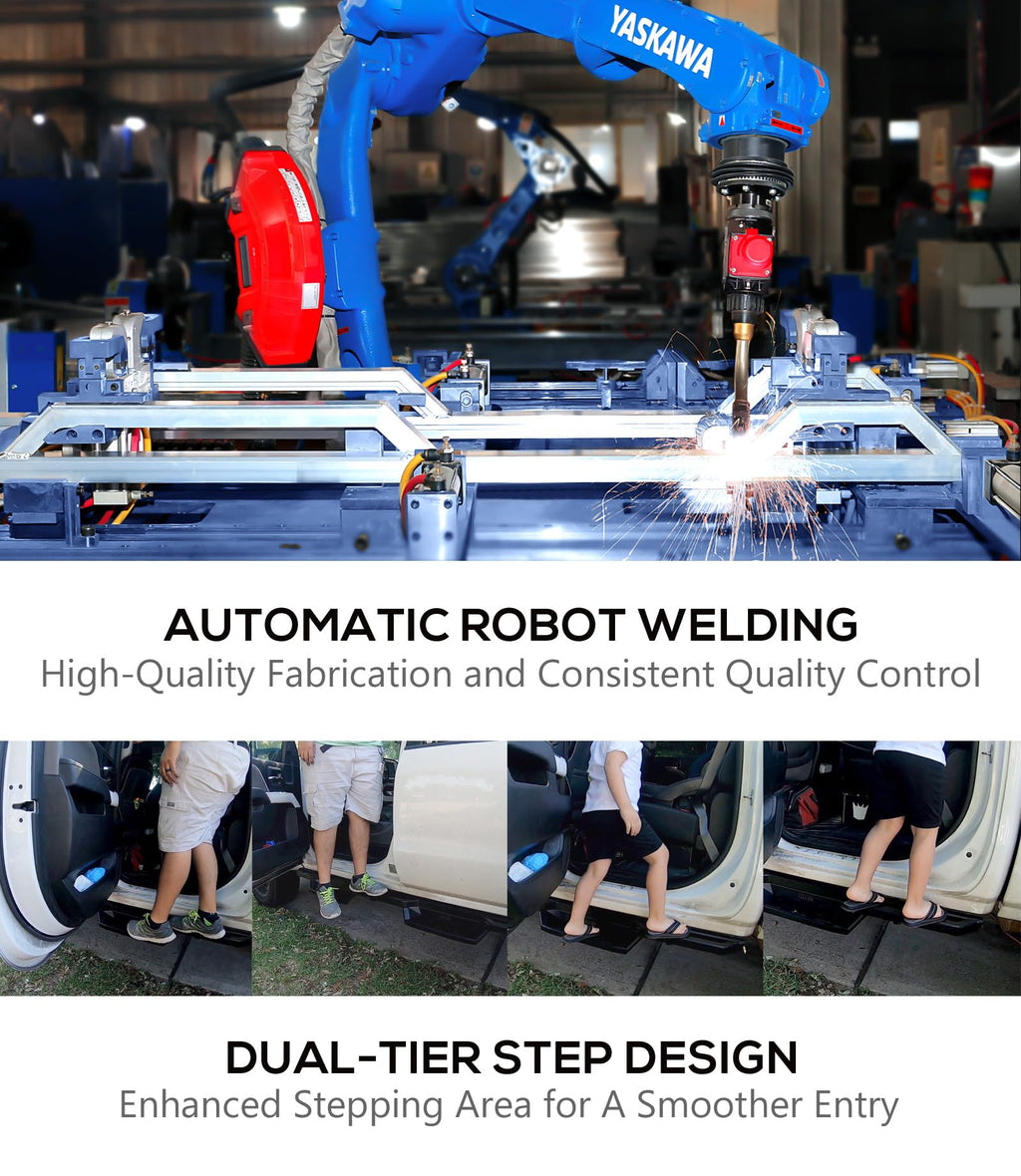 - Convenience function: Serves as both side bars and running boards - the iArmor's extra wide surface provides a sturdy step up into your truck.