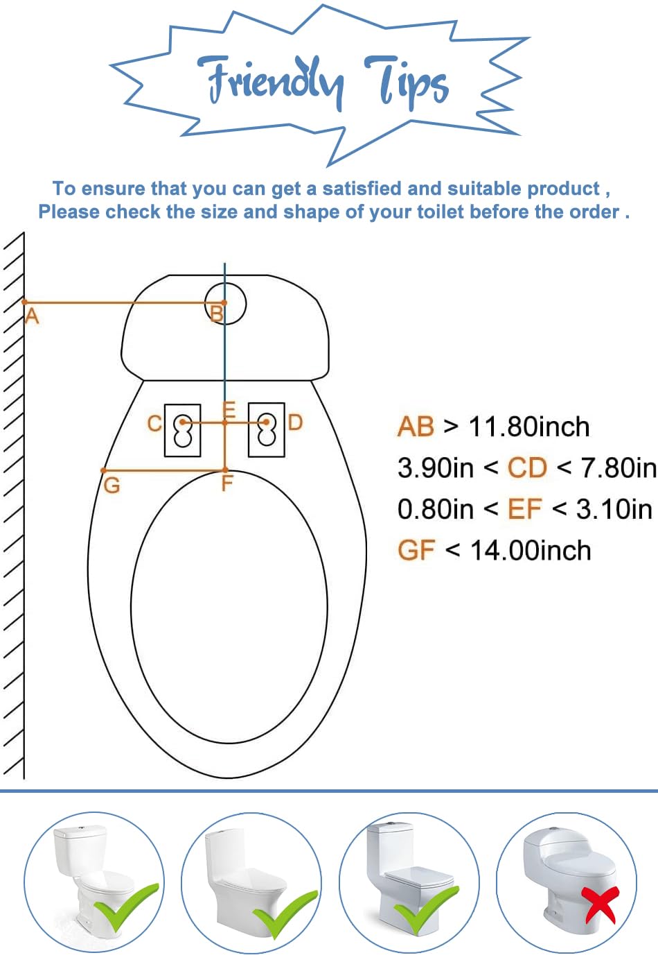 - 【High Quality Components】- The entire Apure Bidet attachment are built with high-pressure professional faucet quality valves and ABS material with high-strength. Package comes with braided steel hose and metal T-adapter. Bidet Working Pressure: 50±20 PSI . 4pcs Toilet seat bumpers for the little gap are included with the package for FREE!!! If you have any questions about the product or installation, feel free to contact us, our customer service team are always here for your any helps .