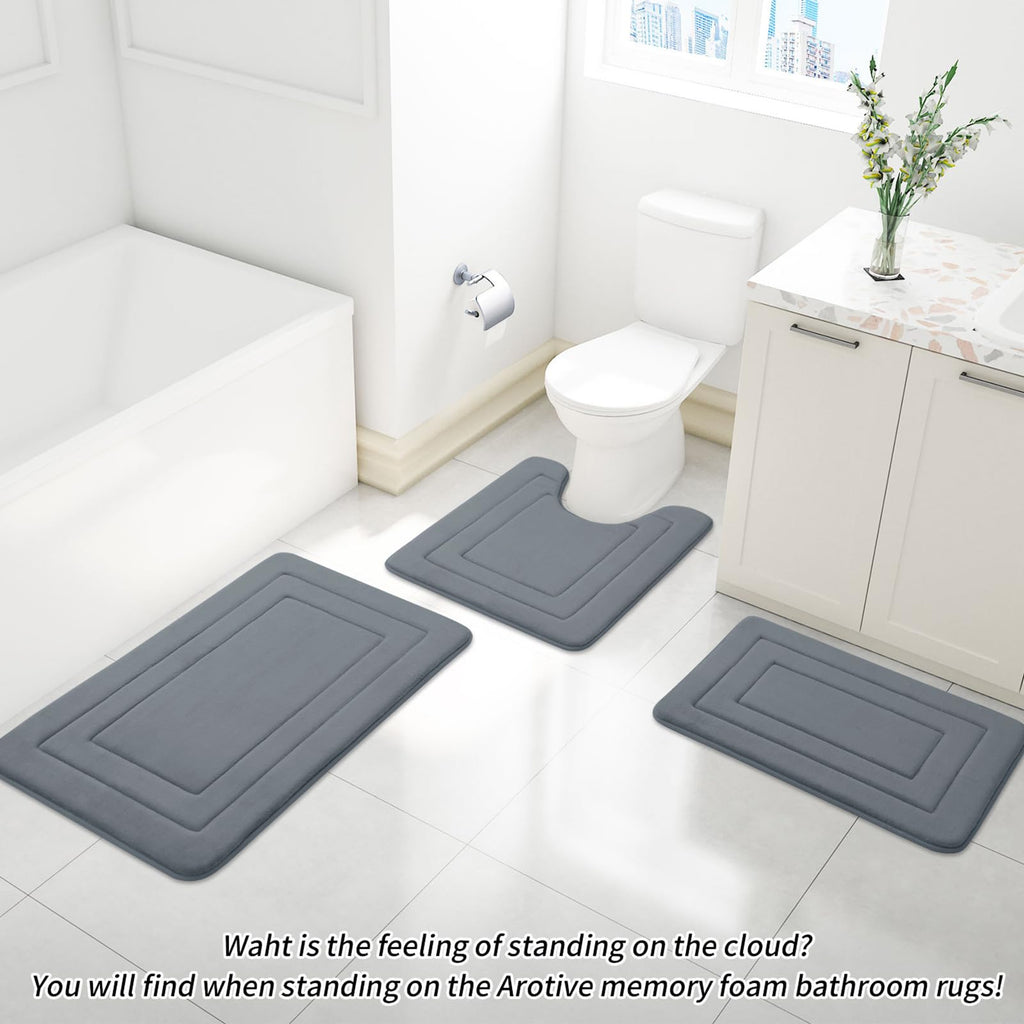 - Super Soft & Comfortable : Arotive bathroom rugs are made of ultra-soft microfiber coral velvet outer material and features a cushion of memory foam. It's like stepping on a cloud, providing unparalleled comfort while standing