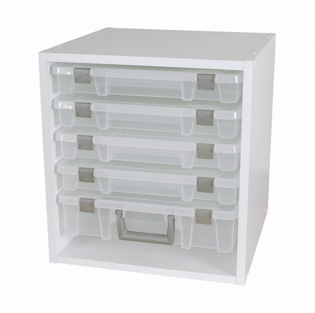 - Craft and Art Supply Organizer: A Great way to organize your creative space! Accommodates slim, standard and deep Super Satchel Boxes of the ArtBin Super Satchel System which can slide out for easy access.