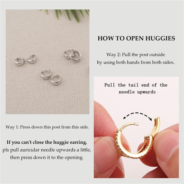 - ✦Lightweight Earrings Outfits✦ Silver huggie earrings are lightweight and super easy to put on and take off. The clasp of these earrings is Flexible and they are easy to close and open and holds securely. Dainty and variety of styles, best ideal purchase of the huggie hoop earrings, perfect addition for casual look, suitable for everyday wear