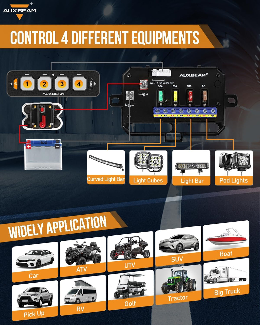 - This Auxbeam AS-R40 slim switch panel DOESN'T support Bluetooth app control