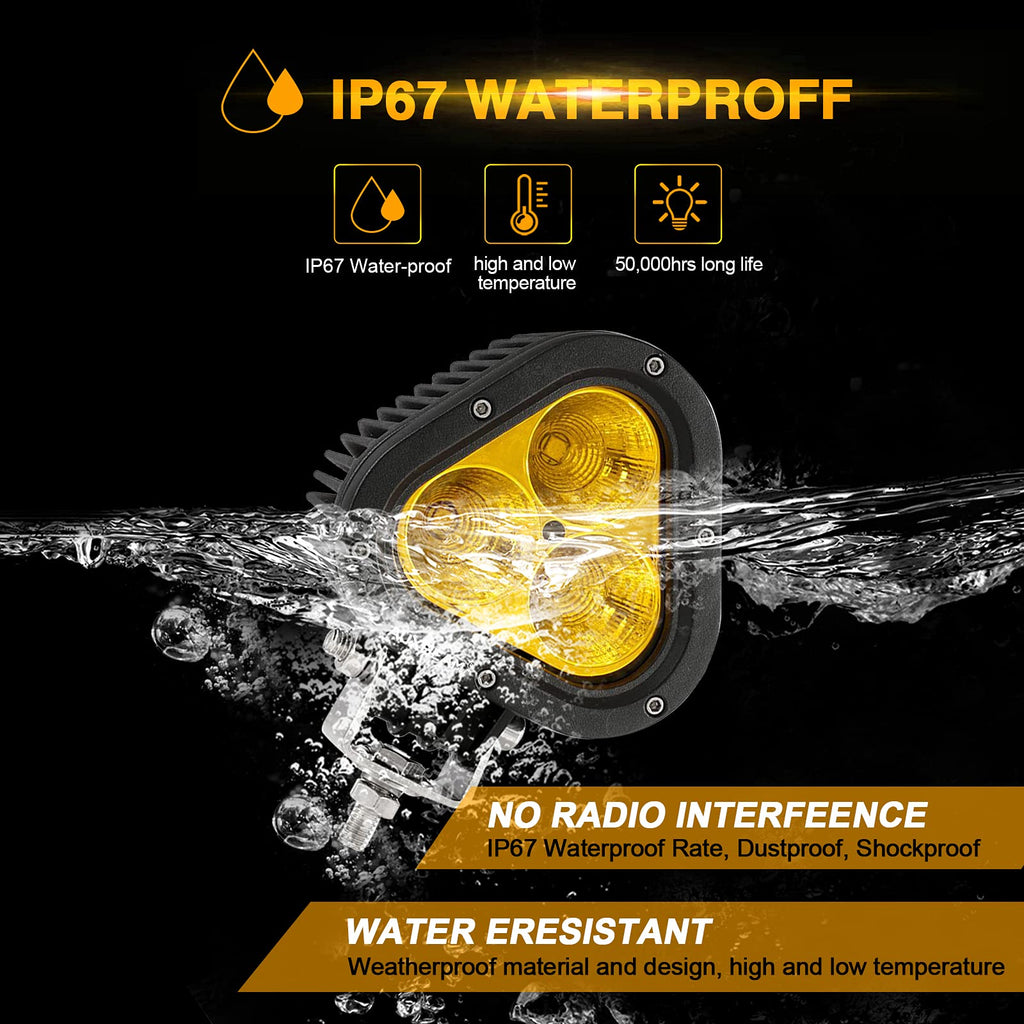 - 【Super Bright Triangle Light Pod】 4 Inch triangle led pod take latest refraction cups, provides flood beam inside and spot beam outside create a 40° light beam. The best Spot flood combo beam for maximum forward distance and improved peripheral illumination along road edges