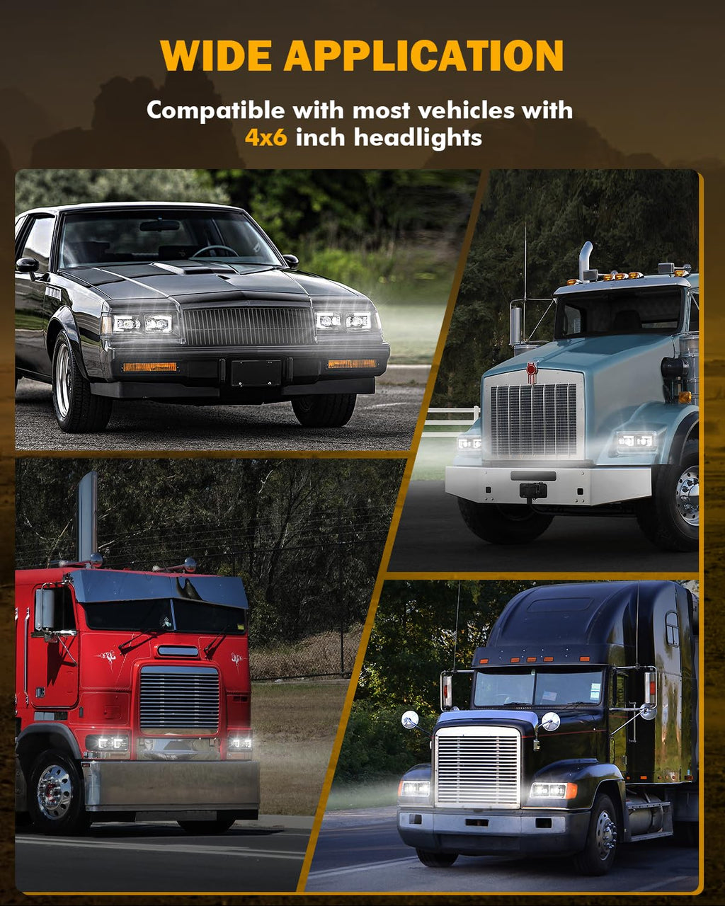 - 【ROBUST AND WIDE APPLICABLE】Crafted from durable die-cast aluminum, these 4x6 headlights feature an advanced heat dissipation design, extending their lifespan to an incredible 50,000 hours. Compatible with a wide array of vehicles, including Kenworth T800/T400/T600, Peterbilt 357/378/379, and various Chevy models, they offer a versatile and dependable lighting solution for any adventure.
