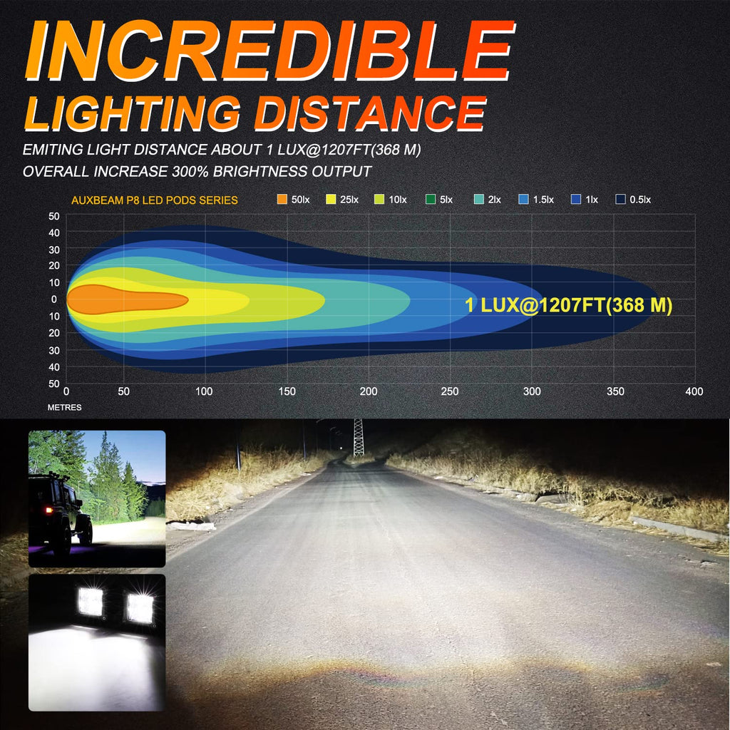 - 【No fear of heavy weather under IP68】Self molding rubber seal, perfectly matching the rigid PC frame & PC cover for a better waterproof & dustproof effect. In addition to the IP68 waterproof solution, we added a tiny breathing vent on the back of each LED cube light to avoid moisture, which is called Auxbeam "Breathe Part".