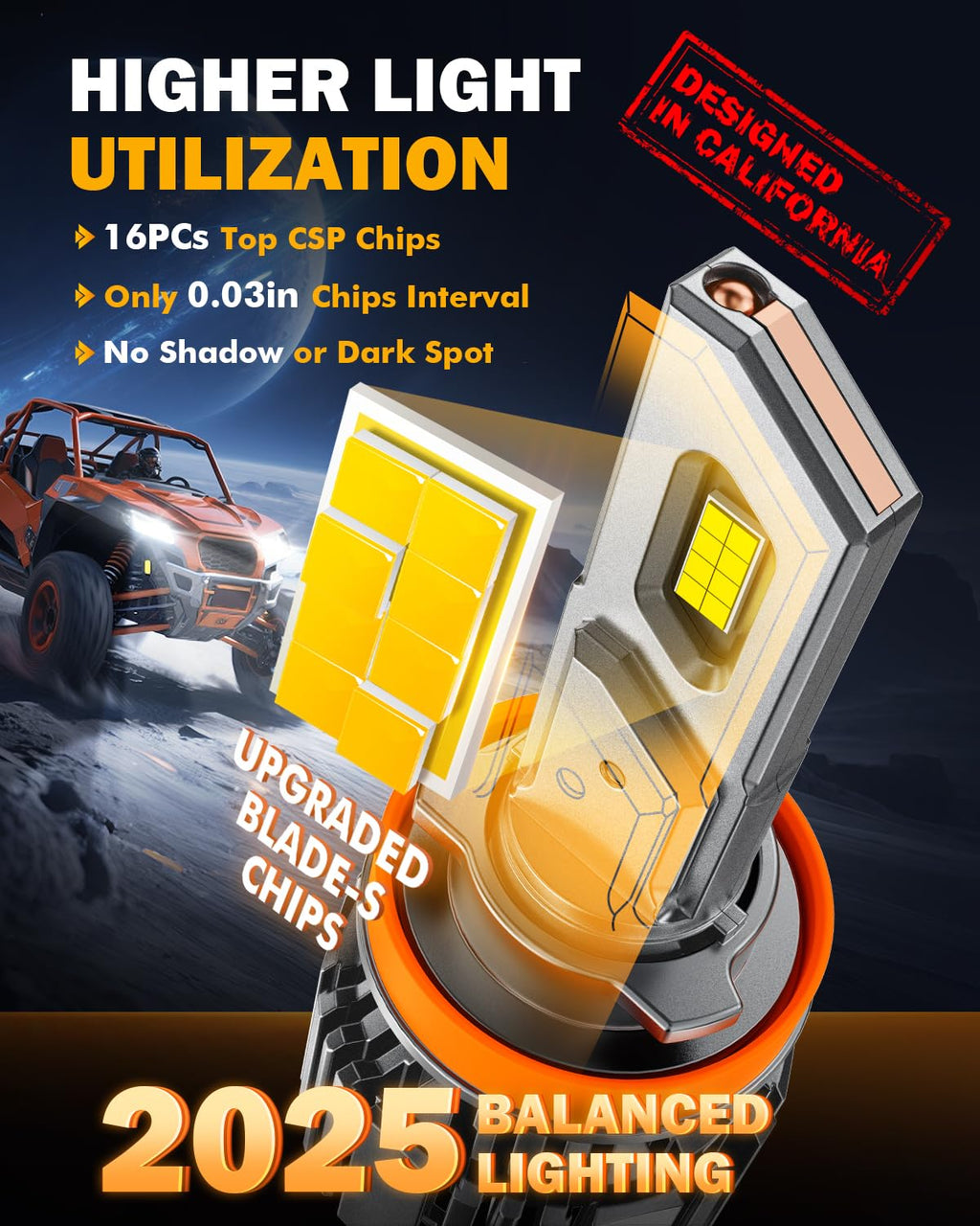 - SUPER-FOCUSED BEAM PATTERN: Featuring a 1:1 halogen filament position design with 0.0074in ultra-thin chip spacing, these h11 fog lights perfectly reflect a super-focused beam pattern with 360°stable full lighting. No dark spots, no shadows, no blinding oncoming traffic.