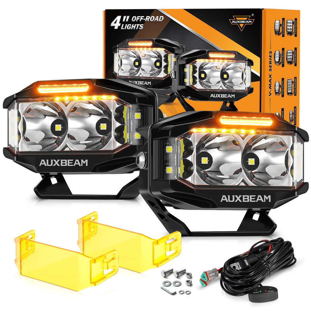 - 【Unique 3+1 Multi-Mode Options】Auxbeam pods have 4 modes: ①white main light, ②Amber DRL function, ③white main light+Amber DRL, ④Amber main light(with amber covers). The amber DRL light not only alerts other drivers in foggy conditions but also adds a unique and stylish look.
