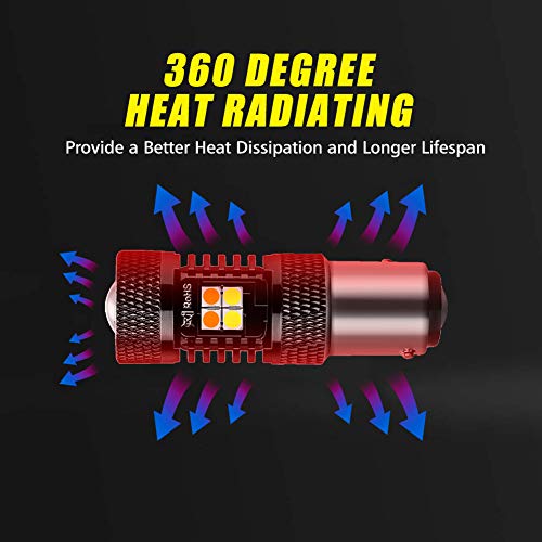 - ▼Dual function (Application): Light up xenon white for parking lights or daytime running lights, flash amber for turn signal lights, and the turn signal flashes ”amber-off-amber-off ”, which makes it easier to see, because most switchback bulbs on the market flash “amber-white-amber-white”. NOTICE: This only replace dual-function stock lights that have front turn signal lights and DRL/parking lights function in one bulb, otherwise, the switchback bulbs will only work in one color or not light up!